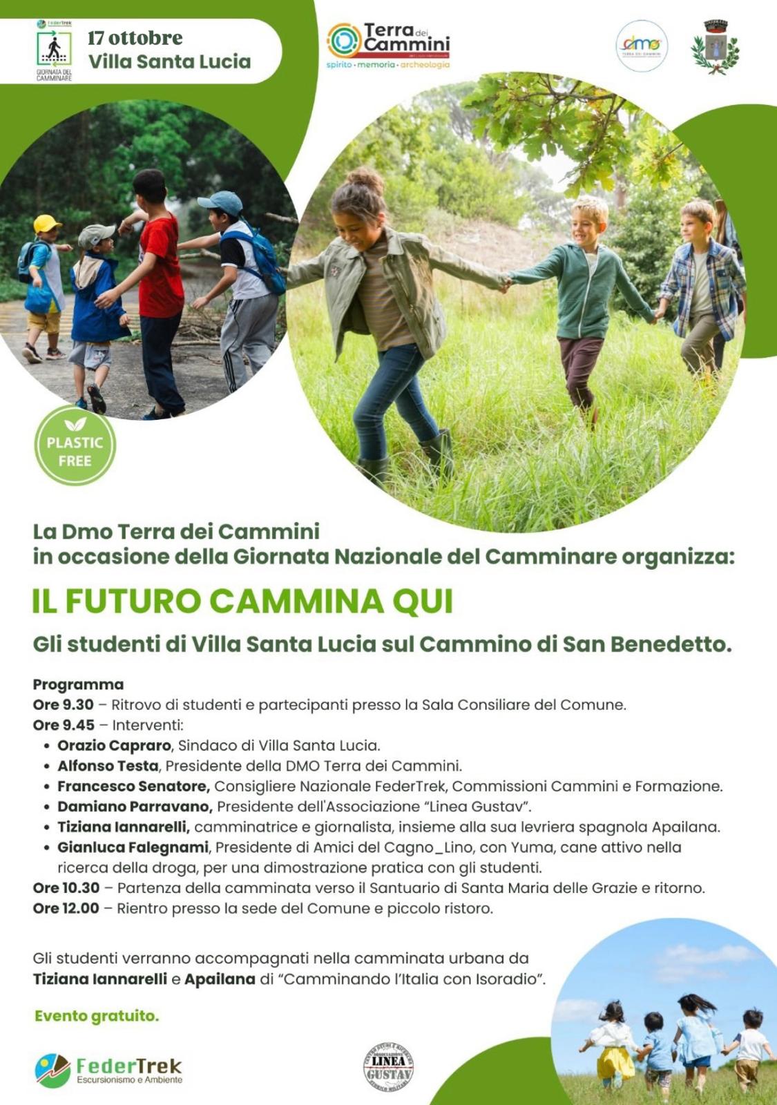 In Occasione della Giornata Nazionale del Camminare l'Amministrazione Comunale in collaborazione con l'Associazione DMO Terra dei Cammini e le scuole del Territorio, organizzano l'evento "Il Futuro Cammina Qui" una camminata sul Cammino di San Benedetto per il giorno 17 ottobre 2025.